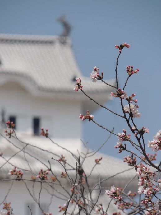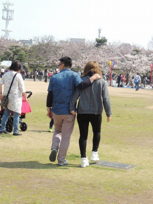 今年は雨が多く、綺麗な桜を見ることが出来た人は少ないでしょうね。 ちょうど晴天の日に姫路城で撮影できました。 桜は淡いピンク色なので背景に悩みましたが、初心者はこんなものです・・・。 父娘の中睦まじい後姿、こんなことさせてくれるのも最後でしょうか・・・。