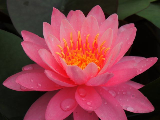 お客さまいただいた蓮が見事に開花。鮮やかなピンク色で見とれてしまいますね。